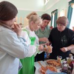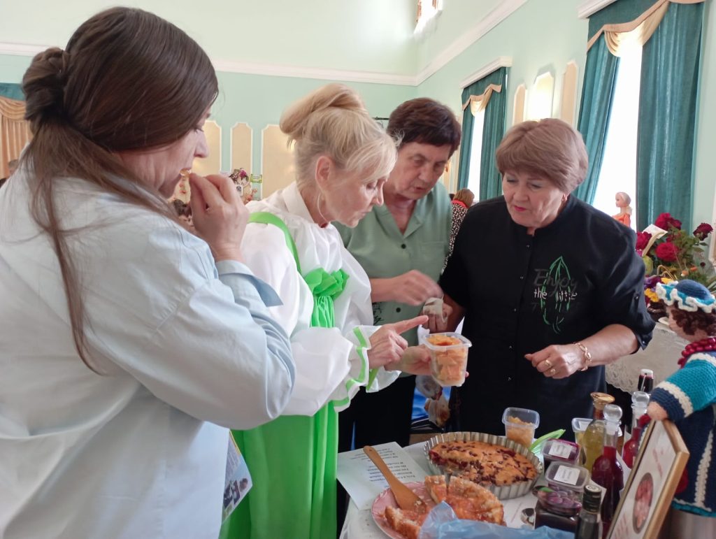 Гастрономический ряд был представлен молочными продуктами, выпечкой, фруктами; к чаю предложено варенье «Бабье лето» из брусники, «Рябина в меду», «Конфитюр из крыжовника с шоколадом», «Сливовый джем с шоколадом» и другое.  С удовольствием участники праздника дегустировали  напитки: из малины «Не выпьешь-не услышишь голосок»,  из вишни «Кружит голову мне вишня»,  из брусники «Вызрела брусника за рекой» , крепкая — «По Марусин поясок».