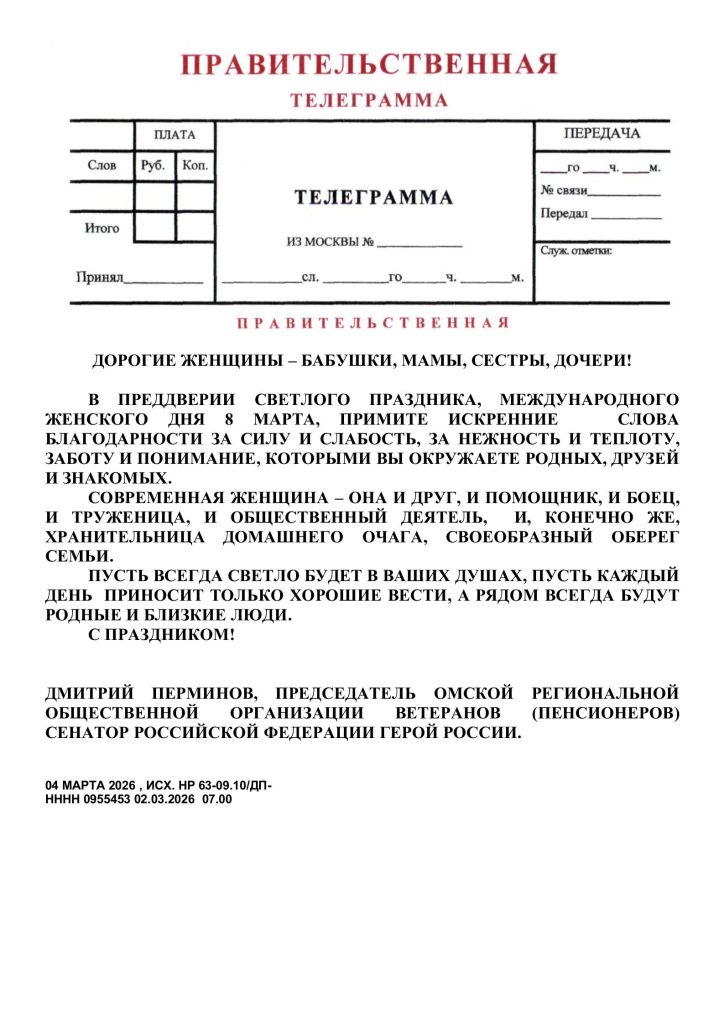 Дмитрий Перминов — Герой России, сенатор от Омской области — переизбран на должность председателя Омской региональной общественной организации ветеранов и пенсионеров.